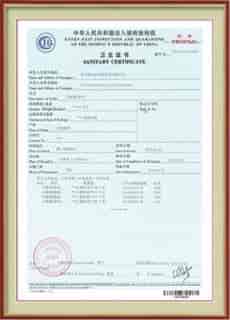 中華人民共和國出入境檢驗檢疫衛(wèi)生證書